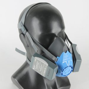 Для удобства эксплуатации предусмотрен рычаг быстрого сброса, он позволит опускать полумаску с лица не снимая другие СИЗ (каску, наушники). Важной особенностью является и наличие клапанной коробки с выдохом вниз, что исключает воздействие потока воздуха на рабочую поверхность и препятствует запотеванию СИЗ лица (очки, щитки).